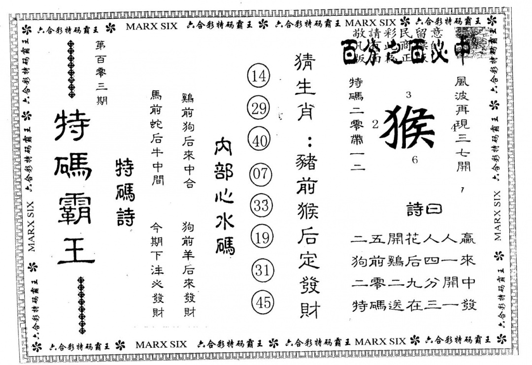 另版曾道人特码诗